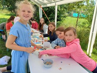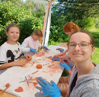 Die Kinder konnten jeden Tag, wie gewohnt, aus einer Fülle an Bastel-, Spiel- und Sportangeboten wählen und so immer ihren Interessen folgen. Fußball oder Tischtennis spielen, Sportbeutel bunt gestalten, Ton modellieren, Perlenketten auffädeln, mit Straßenkreide malen, Wikingerschach spielen, Werwolf spielen, bauen, malen, Speckstein schleifen, einfach Spaß haben, oder auch mal chillen. Es war für jeden immer etwas dabei. Ein kleines Highlight war der erstmalige Einsatz einer Hüpfburg (auch für den privaten Gebrauch zu mieten bei Kai Jakob - 015758188473), die den Kindern sehr viel Spaß bereitet hat.