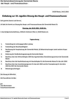 | 6. | Beschluss über die Haushaltssatzung mit Haushaltsplan für die Gemeinde Nieste für das Jahr 2024 |