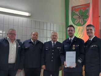 Wir berichten zusätzlich über eine weitere Ehrung, die unseren stellvertretenden Gemeindebrandinspektor Benjamin Boßmann besonders überraschte, da er alle sonstigen Ehrungen entsprechend beantragt und vorbereitet hatte.