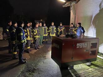 Zunächst erfolgte eine Einweisung in die neu beschafften Notstromaggregate sowie in die Inbetriebnahme der Einspeisepunkte am Feuerwehrhaus sowie am Dorfgemeinschaftshaus.
