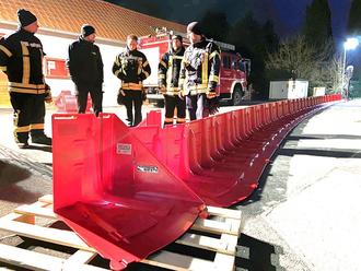 Im Anschluss fand die Einweisung in das ebenfalls neu beschaffte, mobile Hochwasserschutzsystem statt, das sowohl bei Hochwasserlagen und Starkregenereignissen sowie bei verschiedenen weiteren Einsatzszenarien als Hilfsmittel eingesetzt werden kann.