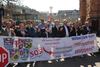 Das machten Bürgermeisterinnen und Bürgermeister aus fünf nordhessischen Landkreisen Seite an Seite mit ihrer Landrätin und ihren Landräten am 27.03.2025 in Wiesbaden deutlich und forderten vom Land Unterstützung durch Entlastung von bürokratischen Vorgaben und kostentreibenden Standards. Dass das Thema auch andernorts unter den Nägeln brennt, zeigt der spontane Zuspruch von Kommunen aus anderen hessischen Landkreisen zur Veranstaltung in Wiesbaden.