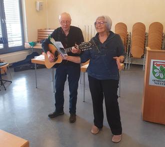 Wie immer war alles gut vorbereitet. Liederzettel waren verteilt, sodass jeder mitsingen konnte. Günter Kuri hatte seine Gitarrenverstärker aufgebaut, damit ausreichende Lautstärke zum Mitsingen vorhanden war.
