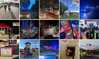 TH-Einsätze (13 x Unwetter, 1 x Tierrettung, 1 x Türöffnung, 5 x Ölspur, 2 x Tragehilfe, 1 x Notarztzubringer, 2 x Amtshilfe)