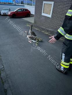 Am Abend, kurz nach dem Übungsdienst, informierte die Leitstelle uns über eine verirrte Nilgansfamilie auf der Kasseler Straße in Heiligenrode. Wir haben die Tiere bis zum alten Sportplatz begleitet, wo sie wieder in ihrem gewohnten Lebensraum waren.