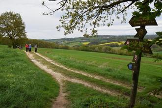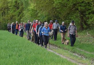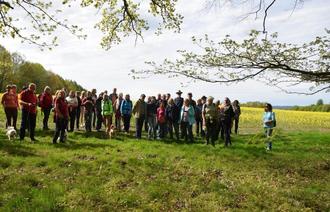 Erwartungsvoll machten sich die Wanderer in Richtung Sensenstein, an den Huteeichen vorbei in Richtung Gut Windhausen, auf den Weg. Unterwegs immer wieder kleine Stopps mit Erklärungen, Geschichten und Anekdötchen durch die Wanderbegleiter der Wanderschule. Zielsetzung war eine kleine gemütliche Wanderung zum Genießen. So folgten natürlich auch Stopps in Windhausen am Mausoleum, am Affendenkmal und am Herrenhaus.