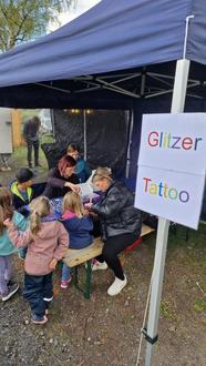 Auch die Glitzertattoos waren ein voller Erfolg: Dank dem Einsatz unserer fleißigen Helferinnen Julia und Carolin konnten sie auch in diesem Jahr wieder angeboten werden.