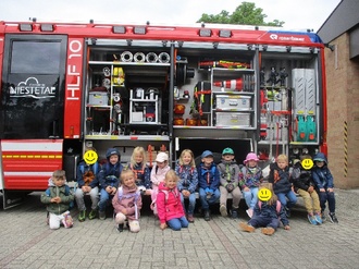 Die Kinder durften die Feuerwehrstation besichtigen, echte Feuerwehrfahrzeuge bestaunen und erfuhren, welche Aufgaben ein Feuerwehrmann hat und welche Ausrüstung er benötigt, um Menschenleben zu retten.