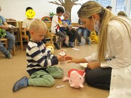 Unteranderem besuchte uns Frau Dr. med. Julia Schnelle, eine Fachärztin für Kinder und Jugendpsychiatrie und Psychotherapie, und errichtete mit den Kindern ein Kuscheltier Krankenhaus.