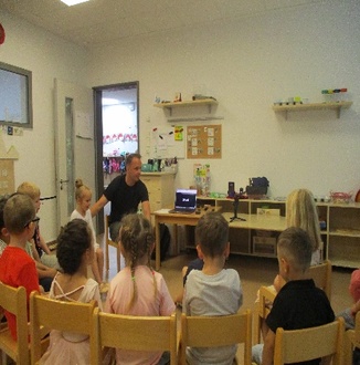 Herr Winter brachte eine kurze Präsentation für die Kinder mit, in denen er erklärte was er beruflich macht.