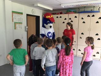 Die Vorschulgruppe aus der Kita Schwalbennest, hatte Besuch vom DLRG.