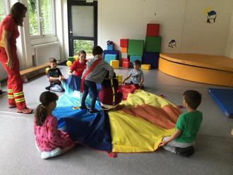 Die Kinder hatten hier eine Menge Spaß und es gelang allen, ihre Freunde aus den „Wellen“ des Schwungtuches zu retten.