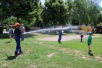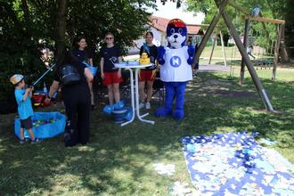 Für genügend Seegang und immer ‘ne Handbreit Wasser unterm Kiel sorgten an diesem Tag zwei Hüpfburgen und die Freiwillige Feuerwehr Niestetal. Auf unserem Verfügungsdeck gab es allerhand Spiel-, Schmink- und Bastelaktionen. Langeweile kam jedenfalls nicht auf, denn auch das Tic-Tac-Theater und ein waschechter Pirat waren zu Gast. Die DLRG übernahm die "Seenotrettung".