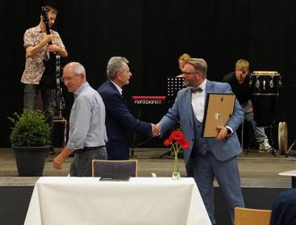 Am 11. Juli 2024 wurde unser Bürgermeister Marcel Brückmann in seine zweite Amtszeit eingeführt. Die Veranstaltung fand in der Aula der Wilhelm-Leuschner-Schule und den angrenzenden Räumlichkeiten statt, die den 180 Gästen Platz für einen gemütlichen Abend boten. Im Rahmen der angesetzten Gemeindevertretersitzung wurde Brückmann schließlich durch den Vorsitzenden der Gemeindevertretung, Herrn Volker Hammermüller, vereidigt. Im Anschluss verlas der Erste Beigeordnete, Herr Bernhard Steinbach, die Ernennungsurkunde. Den Empfang der Urkunde bestätigte Brückmann anschließend. Somit ist er ab dem 1. September 2024 offiziell für weitere sechs Jahre Bürgermeister der Gemeinde Niestetal.