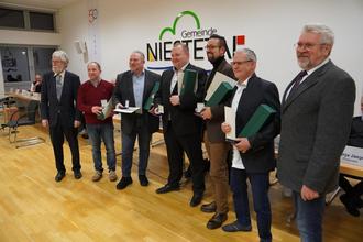 Am 14. Dezember 2023, im Rahmen der Abschlusssitzung der Gemeindevertretung, wurden traditionsgemäß wieder Medaillen in Gold, Silber und Bronze an Ehrenamtliche verliehen, die sich in der Gemeindepolitik durch jahrelange Tätigkeit für Niestetal auszeichneten. Überreicht wurden die Auszeichnungen von unserem Vorsitzenden der Gemeindevertretung, Herr Volker Hammermüller, und von unserem Beigeordneten, Herr Dr. Drewitz.
