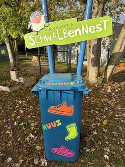 Schuhe zuhause aussortieren und in die bunte Sammeltonne am Kindergarten Schwalbennest werfen.