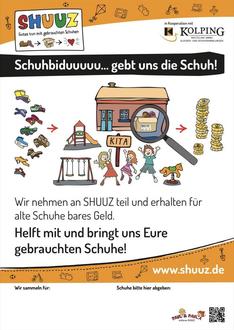 Wir nehmen an der Shuuz-Aktion teil. Dabei sammeln wir gut erhaltene und paarweise gebundene Schuhe, die nicht mehr gebraucht werden.