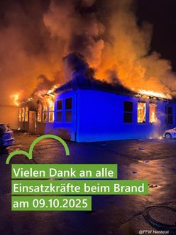 Danke für die stundenlange, anstrengende Arbeit vor Ort und Gratulation zur guten Abwicklung dieses Einsatzes: Die FFW Niestetal, das Technische Hilfswerk Ortsverband Kassel, Großalmerode und Eschwege, die Berufsfeuerwehr Kassel, die Freiwilligen Feuerwehren Helsa, Kaufungen, Nieste, Lohfelden, Fuldatal, Espenau, Schauenburg und Baunatal sowie die Werkfeuerwehr Daimler Truck AG Kassel, der Landkreis Kassel und die Stadt Kassel, der Verpflegungszug des Kreisverbands Region Kassel vom Deutschen Roten Kreuz, die Polizei Nordhessen und der Niestetaler Bauhof.