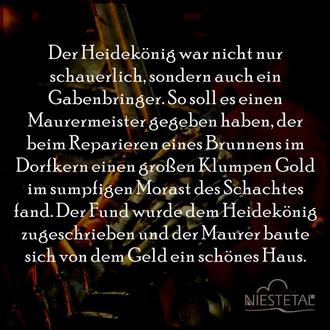 So erzählt man sich seit hunderten Jahren die Sagen vom Heidekönig. Er trat vermehrt rund um Heiligenrode auf. Die Märchen um ihn sind fast vergessen...