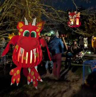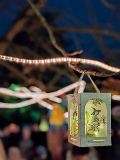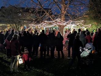 Um 17 Uhr gings voller Freude und mit vielen strahlenden Laternen los, durch den nahegelegenen Park. In zwei Zügen schlängelten sich die Kinder mit ihren Familien durch die dunklen Wege.