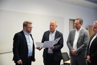 Kommunalminister Roman Poseck hat dem Bürgermeister von Niestetal, Marcel Brückmann, einen Zuwendungsbescheid in Höhe von 75.000 Euro zur Förderung der interkommunalen Zusammenarbeit (IKZ) überreicht. Mit den Mitteln unterstützt die Hessische Landesregierung eine Kooperation der Gemeinden Helsa, Nieste und Niestetal bei der Nutzung einer Finanzsoftware, um externe Kosten zu senken und personelle Ressourcen effizienter zu nutzen.