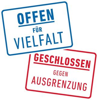 Vielleicht sagt Ihnen „Offen für Vielfalt – Geschlossen gegen Ausgrenzung“ noch nichts. Aber mit großer Sicherheit sind Sie unserem Markenzeichen schon begegnet. Dem Wende-Türschild mit der Aufschrift: „Offen für Vielfalt – Geschlossen gegen Ausgrenzung“