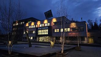 Zur Aktionswoche „Orange Days“ gegen Gewalt an Frauen hat die Gemeinde Niestetal das Rathaus in der Aktionsfarbe Orange beleuchtet.