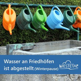 Die Winterzeit beginnt, also wird ab sofort das Wasser abgestellt. Liebe Nutzerinnen und Nutzer der Friedhöfe in Heiligenrode und Sandershausen, aufgrund der fallenden Temperaturen und Frost, werden die Wasseranschlüsse der Niestetaler Friedhöfe für dieses Jahr abgestellt.