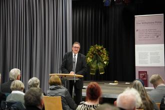 Der Volkstrauertag ist kein Tag der Vergangenheit, wie manche meinen: Er ist ein Tag der Mahnung für unsere Gegenwart und unsere Zukunft. Denn die Geschichte ruht nicht still. Sie fordert uns immer wieder heraus zu eigener Haltung und zu eigenem Handeln. Sie sagt uns: Lernt aus dem, was war, damit nicht noch einmal geschieht, was nie wieder geschehen darf. Unsere Erinnerung an die Schrecken der beiden Weltkriege des vergangenen Jahrhunderts ist darum eine Verpflichtung. Der Firnis der Zivilisation ist dünn, wenn Hass, Gier und Machtstreben die Menschlichkeit verdrängen.