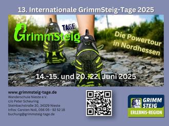 Unter dem Motto „GrimmSteig-Tage NEU“ in zwei Schritten, 1. Schritt 2025, 2. Schritt 2026, starten wir mit euch in das kommende Wanderevent.