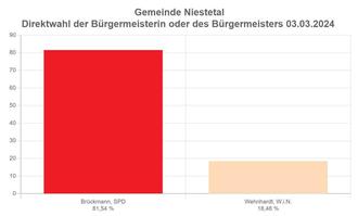 Bei der Wahl zum Bürgermeister der Gemeinde Niestetal in 2024 wurde Herr Marcel Brückmann mit 81,54 % der Stimmen wiedergewählt.