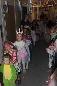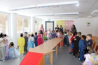 Am Rosenmontag, den 16.02.2026 feierten wir im Kindergarten unsere Faschingsfeier unter dem Motto „Im Land der Träume“.