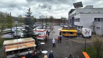 Draußen wateten neben einem Holz-und Metallkünstler einige Stände mit Essen und Trinken auf. Auch, wenn das Wetter zunächst etwas wechselhaft war, konnten sich die Leute beim NCC Getränke holen, beim DRK Hot Dogs und bei Harry’s Wildspezialitäten allerhand aus Wildschwein. Dazu gesellten sich die Bio-Wursteküche mit Spiralpommes, Apels Fischbude mit frischen Fischbrötchen, der Kaufunger Hof mit vielfältiger Hausmannskost und die leckeren Pfannengerichte der Jungs von der Schlämmerpfanne.