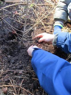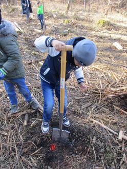 Die Kinder und auch die Eltern waren hochmotiviert und buddelten und pflanzten bei bestem Wetter insgesamt 100!!! Bäume ein.