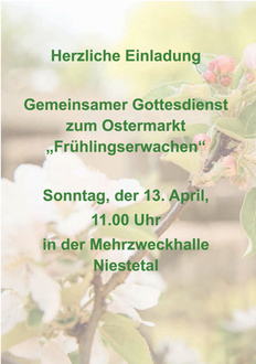 11:00 Uhr Gottesdienst zum "Ostermarkt Frühlingserwachen" (in der Mehrzweckhalle)