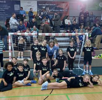 Wir 14 Mädchen und Jungen aus der Grundschule Sandershausen haben uns am Samstag, dem 17. Januar 2026 mit Frau Emrich in der großen Turnhalle in Heiligenrode getroffen. Vorher hatten wir dreimal dienstags nach der Schule mit Frank vom TSV Heiligenrode trainiert. Wir haben jede/r ein T-Shirt geschenkt bekommen, in dem wir auch gespielt haben.