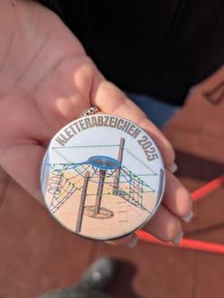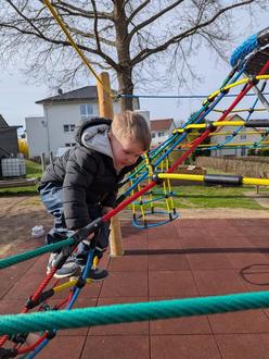 Nachdem das Band durchtrennt war, durften die Kinder nacheinander in kleinen Gruppen und unter Anleitung die ersten Kletterpartien wagen. Nach bestandener Überquerung bekam jedes Kind eine Medaille als Kletterabzeichen.