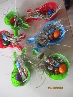 Als wir zurück in die Gruppen kamen, erwartete uns eine große Überraschung: Überall waren bunt gefüllte Osternester für die Kinder versteckt, was für reichlich Aufregung und Freude sorgte.