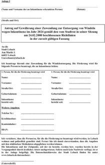 Um finanzielle Nachteile im Zusammenhang mit der Windelentsorgung auszugleichen oder zu mindern, die sich aus der gewichtsabhängigen Veranlagungsgrundlage bei den Abfallbeseitigungsgebühren ergeben, werden in medizinisch nachgewiesenen Fällen Zuwendungen gewährt für Personen,
