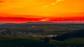 Sonnenuntergang Ende Februar. Aufgenommen von Aschbach in Richtung Niedersaubach. Foto: Michael Dietzen