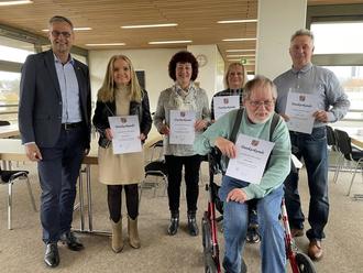 von links: Bürgermeister Klauspeter Brill, Kita Kreutzer, Hannelore Kuhn, Elisabeth Schmitt, Peter Sehn und Stefan Scherer. Foto: Kirsch/Stadt