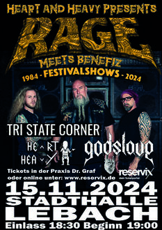 Um unsere Jubiläumsausgabe zu toppen, legen wir noch einen drauf: Die deutsche Metal Legende RAGE kommt am 15.11.24 zu uns nach Lebach.