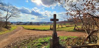 Das Wegekreuz in Verlängerung der Kreuzhecker Straße in Gresaubach.
