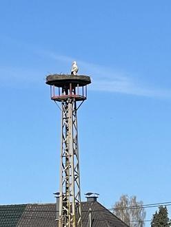 Während der beindruckende Vogel mit dem roten Schnabel und dem leuchtend weißen Gefieder gerade wieder im Landeanflug auf den „alten“ Horst ist, scheint die Störchin darin bereits zu brüten. Mit der Nutzung des neuen Horstes rechnen die Initiatoren hingegen erst im nächsten Frühjahr.