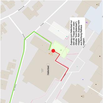 Aufgrund der Baumaßnahmen am Rathausplatz ist ab sofort, der Zugang zum Hallenbad und zum Restaurant „Da Bruno“ ausschließlich über die Treppe von oben (Straße "Zum Hallenbad") möglich. Aus Richtung Rathaus ist vorübergehend kein Durchgang mehr möglich. Wir bitten um Beachtung und Verständnis!