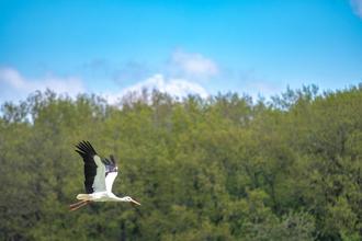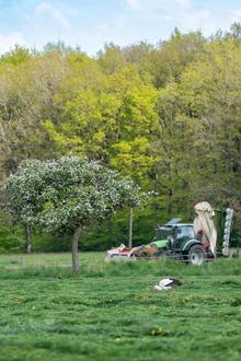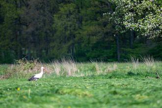 Der Storch ist zu Besuch in Dörsdorf, angelockt durch die erste Grasernte. Fotos: Marcel Junk
