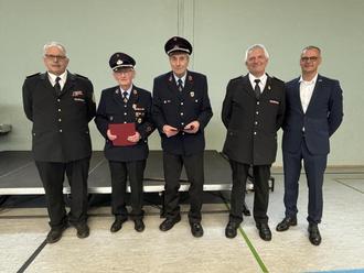 Bürgermeister Klauspeter Brill, Wehrführer Hans Kartes, der Vizepräsident des Landesfeuerwehrverbandes Gerhard Sauer und der Landsweiler Ortsvorsteher Dr. Tobias Weber richteten bei der anschließenden Feierstunde in der Stangenwaldhalle Worte des Dankes an die Kameradinnen und Kameraden. „Unsere Feuerwehr ist eine tragende Säule der Gemeinschaft. Sie leistet herausragende, ehrenamtliche Arbeit und ist an 365 Tagen im Jahr rund um die Uhr einsatzbereit, um die Lebacher Bevölkerung zu schützen und zu unterstützen“, sagte der Chef der Wehr, Bürgermeister Klauspeter Brill. Neben weiteren Ehrungen und Beförderungen wurden Otwin Schu und Edmund Bohlen für mehr als beachtliche 70 Jahre Mitgliedschaft und Treue zur Lebacher Feuerwehr geehrt.