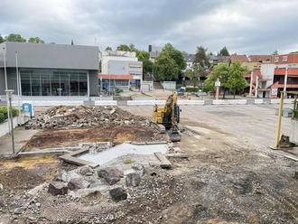 In einem ersten Schritt werden die Oberflächenbeläge und die alte Brunnenanlange zurückgebaut, anschließend folgt die Verlegung eines neuen Regenwasserkanals, ausgehend vom Durchgang zwischen Rathaus und Polizei.