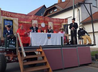 Bei der traditionellen Gerichtsverhandlung, die von zahlreichen Gästen mit Spannung verfolgt wurde, hatte der „Kirwehannes" auch in diesem Jahr keine Chance: „Tod durch den Strang" lautete das Urteil nach altem „Däschder Landrecht".