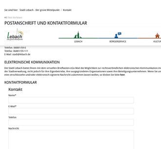 Gerne können Sie uns Ihre Fragen, Ihre Anregungen und Ihre Kritik nach wie vor per Mail an stadt@lebach.de oder über den virtuellen Briefkasten (Kontaktformular auf unserer Homepage) unter https://www.lebach.de/kontakt zusenden.